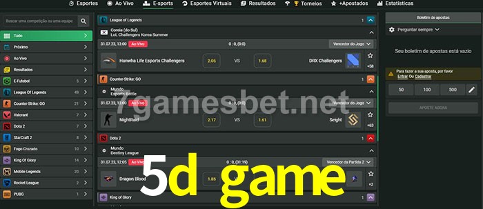 O 5d game oferece uma grande seleção de opções de apostas em e-sports com probabilidades competitivas